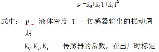 WS3051MD-MM 智能法蘭式單直管密度計(jì)根據(jù)共振原理而設(shè)計(jì)。當(dāng)流過單直管內(nèi)的液體密度變化時(shí),他會(huì)影響密度計(jì)的振動(dòng)質(zhì)量,振動(dòng)質(zhì)量的變化影響單直管的諧振頻率,諧振頻率與過程流體的密度成反比。通過另一個(gè)壓電晶體檢測出來,通過移相和放大電路,測量管被穩(wěn)定在自然諧振頻率上。當(dāng)諧振頻率變化時(shí),通過電子處理單元計(jì)算出準(zhǔn)確的密度值。振動(dòng)頻率與密度的關(guān)系為:
